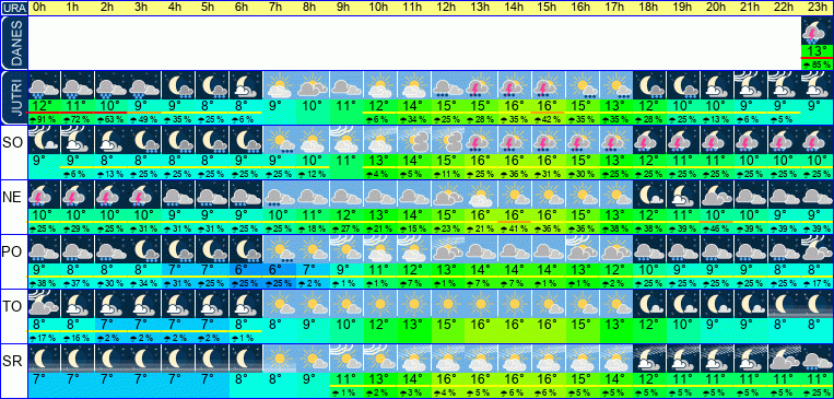 POZOR: ob spremenljivem vremenu se lahko napoved spremeni večkrat na uro.