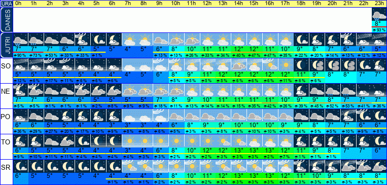 POZOR: ob spremenljivem vremenu se lahko napoved spremeni večkrat na uro.