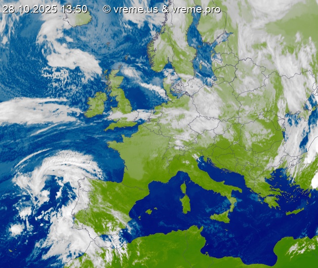 Prva slika prikazuje oblačnost v vidnem (podnevi), druga pa v infrardečem spektru.
