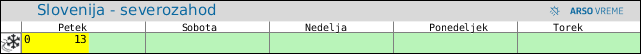 | Petek - 27.02.2026 | Padavine: | 13 mm | ||||||