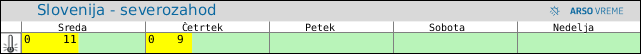 POZOR: ob spremenljivem vremenu se lahko napoved spremeni večkrat na uro.
