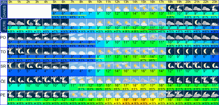 POZOR: ob spremenljivem vremenu se lahko napoved spremeni večkrat na uro.