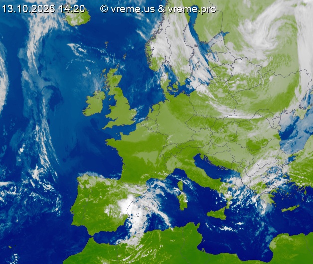 Prva slika prikazuje oblačnost v vidnem (podnevi), druga pa v infrardečem spektru.