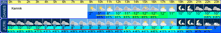 POZOR: ob spremenljivem vremenu se lahko napoved spremeni večkrat na uro.