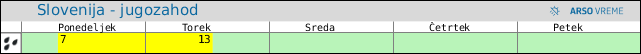 POZOR: ob spremenljivem vremenu se lahko napoved spremeni večkrat na uro.