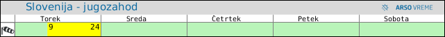 POZOR: ob spremenljivem vremenu se lahko napoved spremeni večkrat na uro.