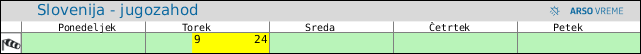 POZOR: ob spremenljivem vremenu se lahko napoved spremeni večkrat na uro.