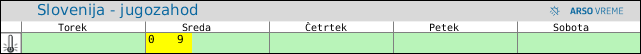 POZOR: ob spremenljivem vremenu se lahko napoved spremeni večkrat na uro.