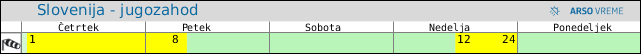 POZOR: ob spremenljivem vremenu se lahko napoved spremeni večkrat na uro.