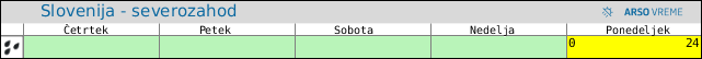 POZOR: ob spremenljivem vremenu se lahko napoved spremeni večkrat na uro.