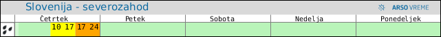 POZOR: ob spremenljivem vremenu se lahko napoved spremeni večkrat na uro.