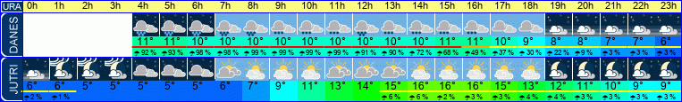 POZOR: ob spremenljivem vremenu se lahko napoved spremeni večkrat na uro.