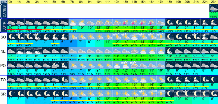 POZOR: ob spremenljivem vremenu se lahko napoved spremeni večkrat na uro.
