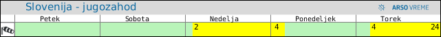 POZOR: ob spremenljivem vremenu se lahko napoved spremeni večkrat na uro.