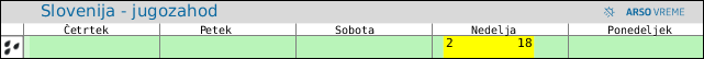 POZOR: ob spremenljivem vremenu se lahko napoved spremeni večkrat na uro.