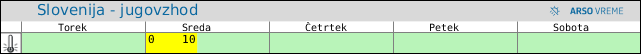 POZOR: ob spremenljivem vremenu se lahko napoved spremeni večkrat na uro.