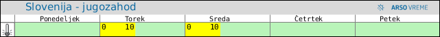 POZOR: ob spremenljivem vremenu se lahko napoved spremeni večkrat na uro.