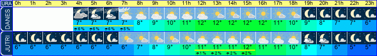 POZOR: ob spremenljivem vremenu se lahko napoved spremeni večkrat na uro.