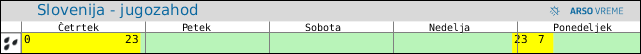 POZOR: ob spremenljivem vremenu se lahko napoved spremeni večkrat na uro.
