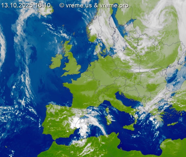 Prva slika prikazuje oblačnost v vidnem (podnevi), druga pa v infrardečem spektru.