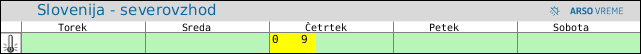 POZOR: ob spremenljivem vremenu se lahko napoved spremeni večkrat na uro.