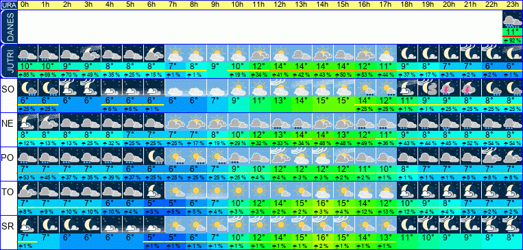 POZOR: ob spremenljivem vremenu se lahko napoved spremeni večkrat na uro.