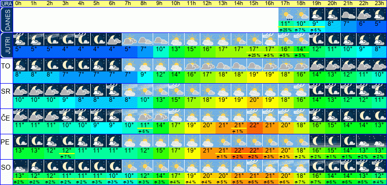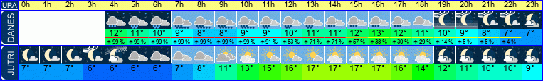 POZOR: ob spremenljivem vremenu se lahko napoved spremeni večkrat na uro.