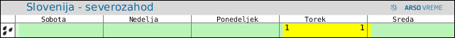 POZOR: ob spremenljivem vremenu se lahko napoved spremeni večkrat na uro.