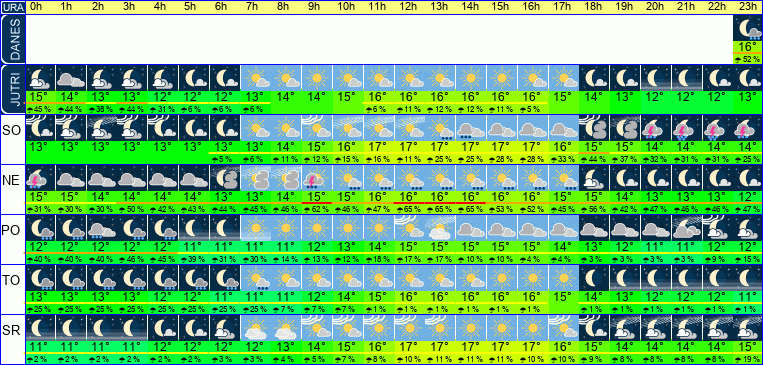 15 km/h možnost padavin31 %