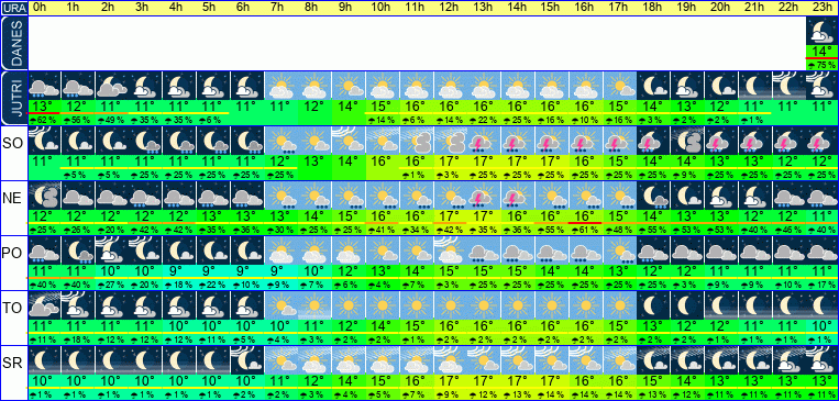 POZOR: ob spremenljivem vremenu se lahko napoved spremeni večkrat na uro.