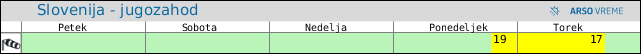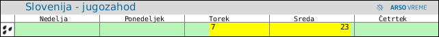 POZOR: ob spremenljivem vremenu se lahko napoved spremeni večkrat na uro.