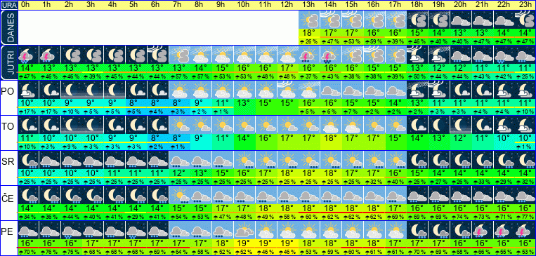 POZOR: ob spremenljivem vremenu se lahko napoved spremeni večkrat na uro.