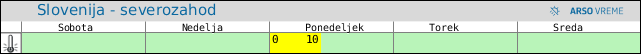 POZOR: ob spremenljivem vremenu se lahko napoved spremeni večkrat na uro.