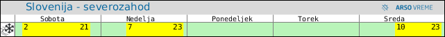 POZOR: ob spremenljivem vremenu se lahko napoved spremeni večkrat na uro.