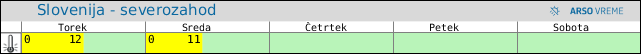 POZOR: ob spremenljivem vremenu se lahko napoved spremeni večkrat na uro.
