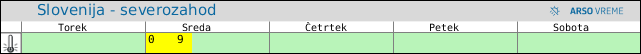 POZOR: ob spremenljivem vremenu se lahko napoved spremeni večkrat na uro.