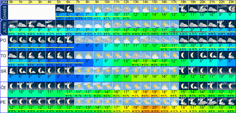 POZOR: ob spremenljivem vremenu se lahko napoved spremeni večkrat na uro.