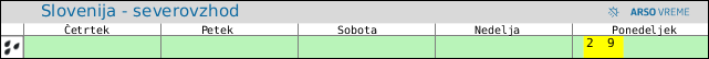 Veter - zmerna ogroženost (Stopnja 2/4) - Slovenija / severovzhod