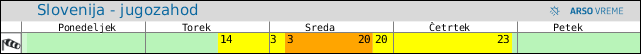 POZOR: ob spremenljivem vremenu se lahko napoved spremeni večkrat na uro.