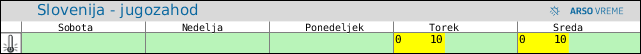 POZOR: ob spremenljivem vremenu se lahko napoved spremeni večkrat na uro.