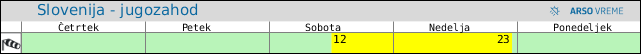 POZOR: ob spremenljivem vremenu se lahko napoved spremeni večkrat na uro.