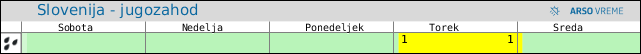 POZOR: ob spremenljivem vremenu se lahko napoved spremeni večkrat na uro.