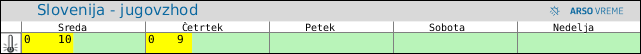 POZOR: ob spremenljivem vremenu se lahko napoved spremeni večkrat na uro.