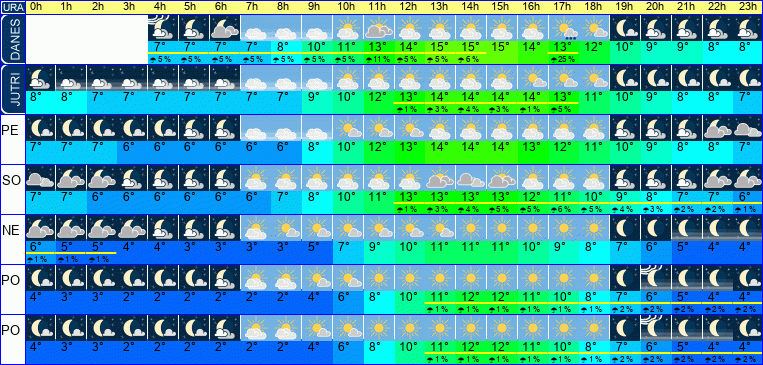 POZOR: ob spremenljivem vremenu se lahko napoved spremeni večkrat na uro.